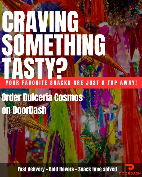 When those snack cravings hit, Dulceria Cosmos has you covered. Now available on DoorDash, you can enjoy your favorite chips, drinks, and tasty munchies without leaving home. Whether it’s a quick bite, movie night snacks, or something to share with friends and family, we’ll bring the flavor straight to your door — fast, fresh, and hassle-free. Just open DoorDash, find Dulceria Cosmos, and let snack time come to you.